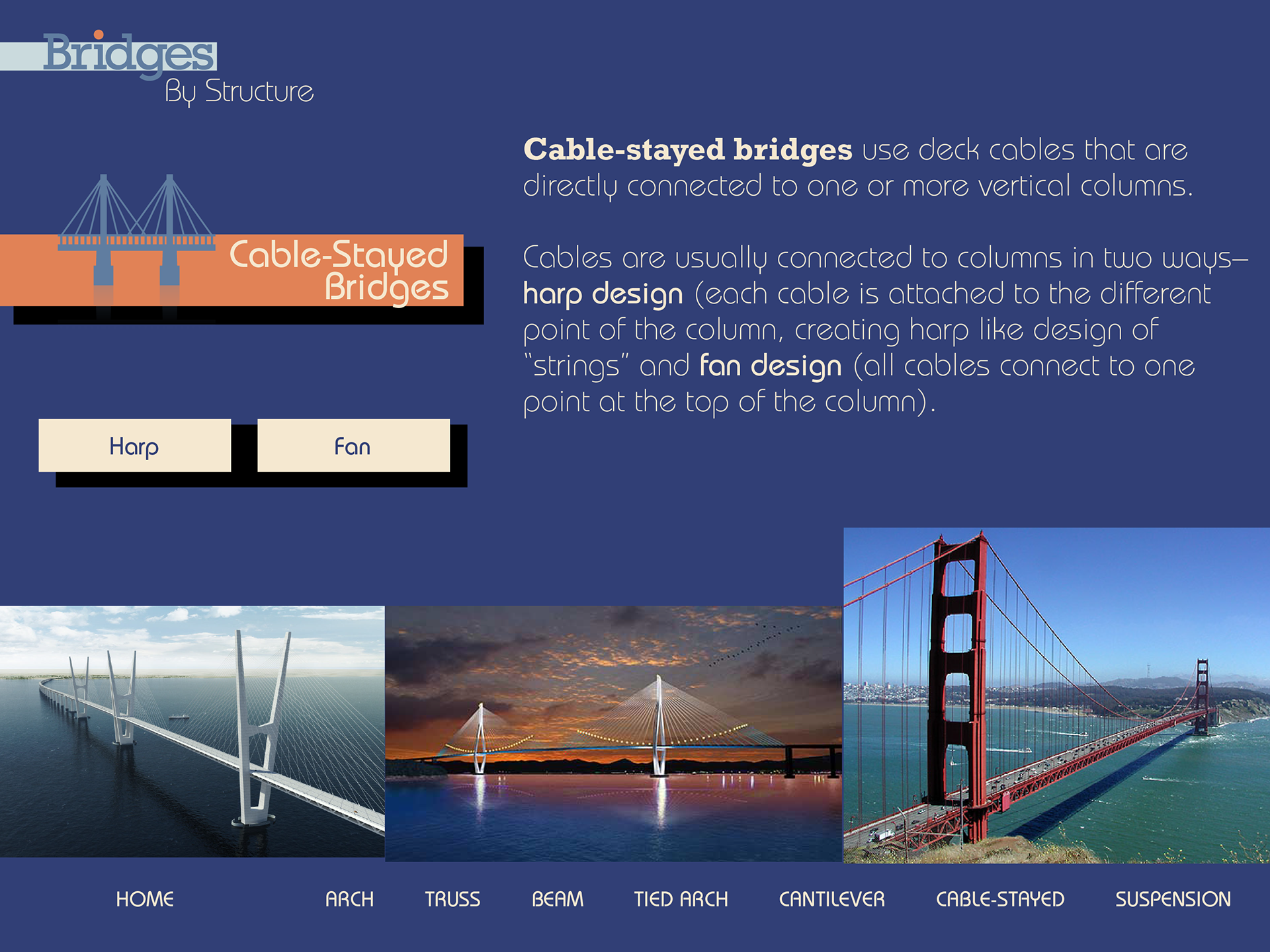Slides for an interactive guide to bridge types and history